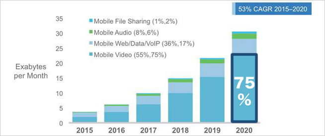 2020年の東京オリンピックまでに、現在の通信量が8倍になり、更にその8倍になった通信量の75%が、動画閲覧になると予想されています。