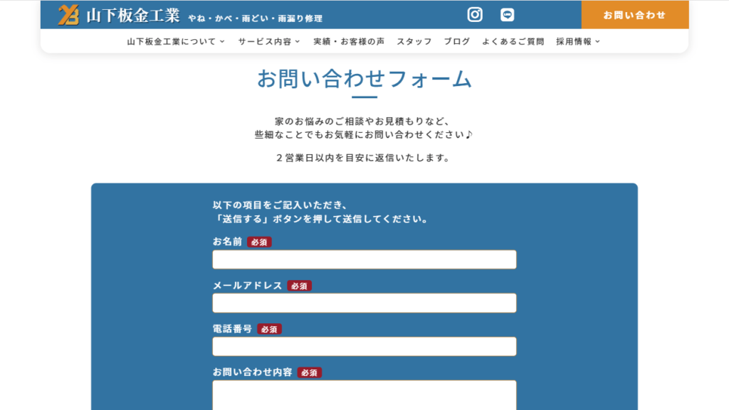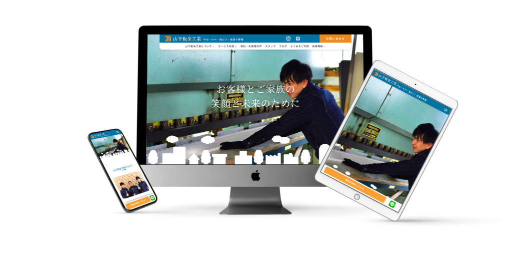 山下板金工業様の魅力・信頼性が伝わり、集客のできるお問い合わせのしやすいホームページを目指したいとのことでした。