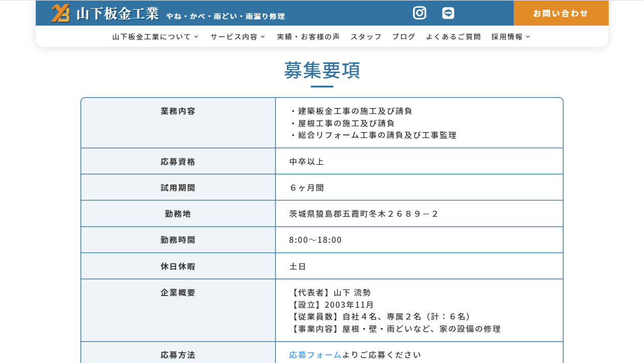 茨城県五霞町のやね・かべ・雨どい・雨漏り修理の専門業者、山下板金工業様のホームページをリニューアルしました