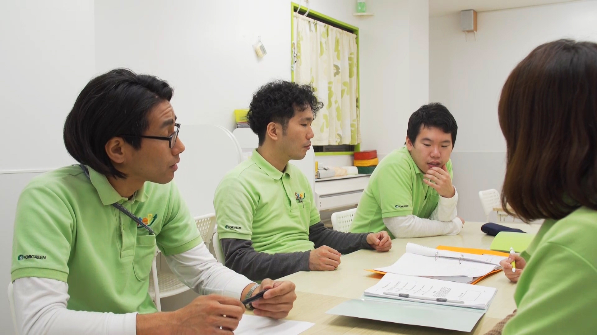 子供と関わる仕事は他にもあるなかで、フォーグリーンの仕事ならではの魅力である、「様々な特性と持つ子供たち、ひとりひとりじっくり関われる。」という部分にフォーカスを当て、日々の仕事内容などについて紹介。利用者のプライバシーにも配慮し、撮影時には子供の顔が映らないよう心かけた。