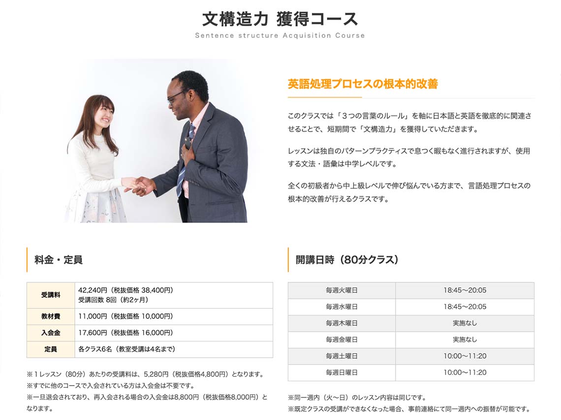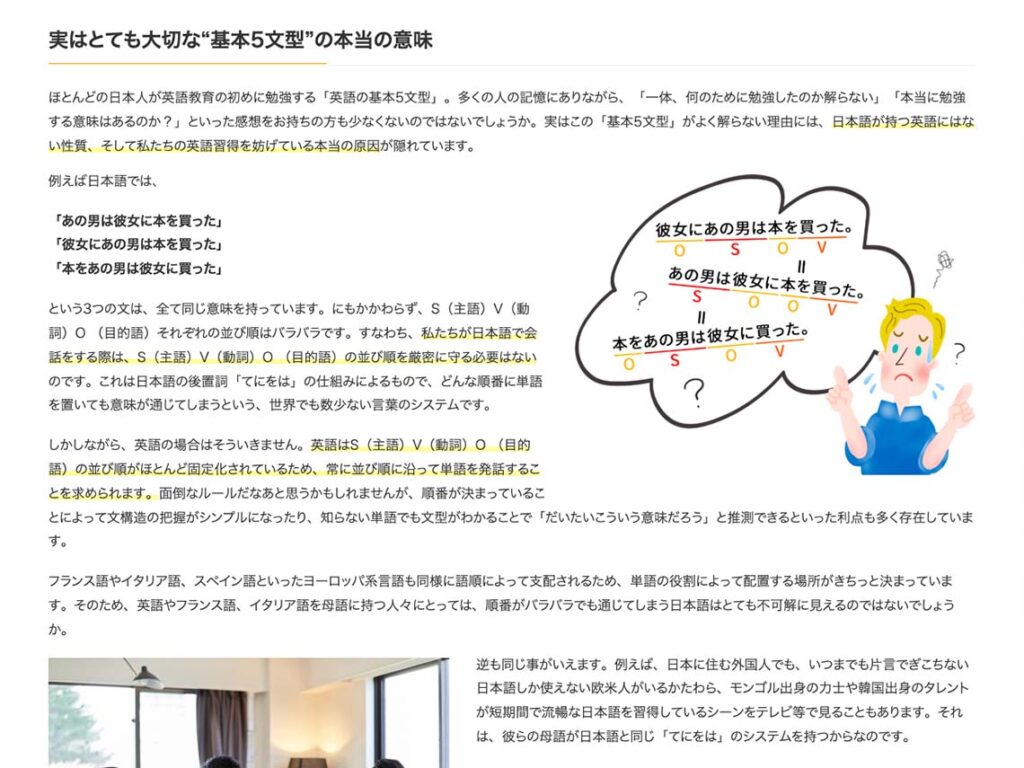 独自メソッドによる徹底的なトレーニングで英語力アップ!ブログ記事を駆使してSEOにも効果的なサイトに【英会話教室|WEBサイト制作】