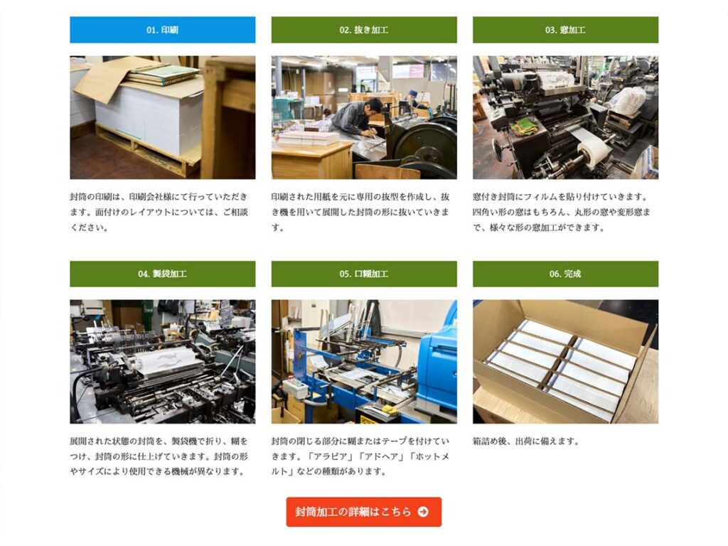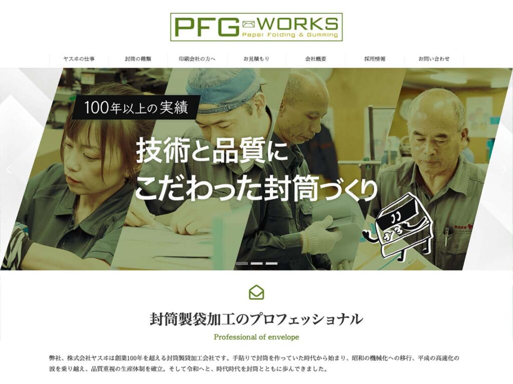 印刷会社に技術と知識をアピール!求人募集にも効果的なWEBサイトで封筒製袋加工の仕事の奥深さを表現【製造業|WEBサイト制作】