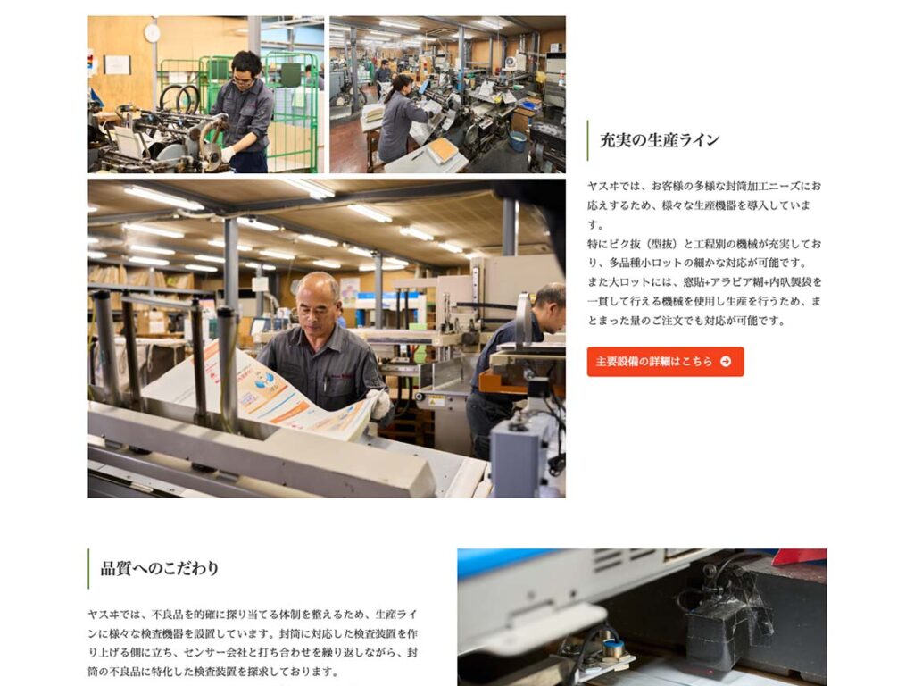 埼玉県戸田市にて封筒製袋加工を行う株式会社ヤスヰ様のWEBサイトを制作。求人応募を検討している人を主なターゲットに、印刷会社様からの新規案件にも繋げられるような内容を目指した。