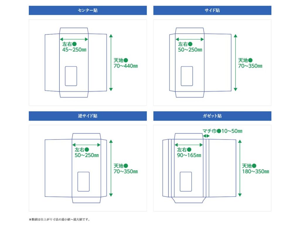 また各種封筒の仕上がり寸法サンプルや、生産機器に関する詳細な情報を掲載することで技術の豊富さをアピール。会社のイメージアップを図ることで、印刷会社の担当者からの新規問い合わせに繋げられるような内容を心がけた。