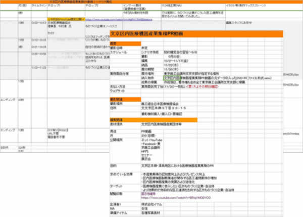 ここまでで得た情報を元に、動画構成やシナリオ、撮影スケジュールを作成。